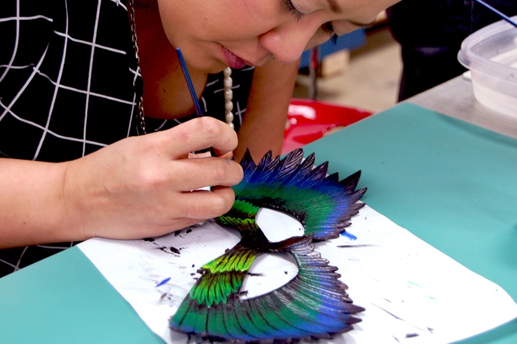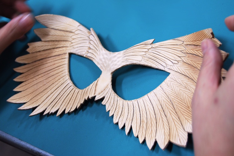 In this class students will learn basic leatherworking techniques including how to create and use a template, cutting out a pattern, tooling, and forming/molding leather. After completing their mask, students will then have the opportunity to dye, paint or airbrush their finished creation.